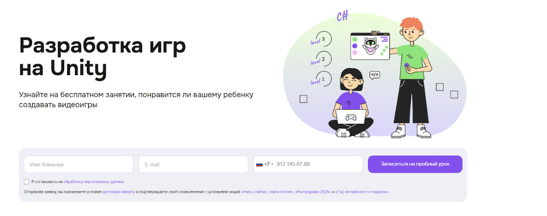 Содержание: онлайн-курс поможет школьникам погрузиться в геймдев и изучить функционал Unity, программирование на C# и создание трехмерных игровых миров.
