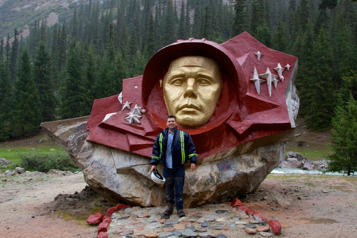 Памятник первому космонавту установлен в горах Киргизии в 1990-м году. Советские космонавты проходили подготовку к полетам на озере Иссык-Куль и там же реабилитировались после посадки. Поэтому "космических" мест вокруг озера немало.