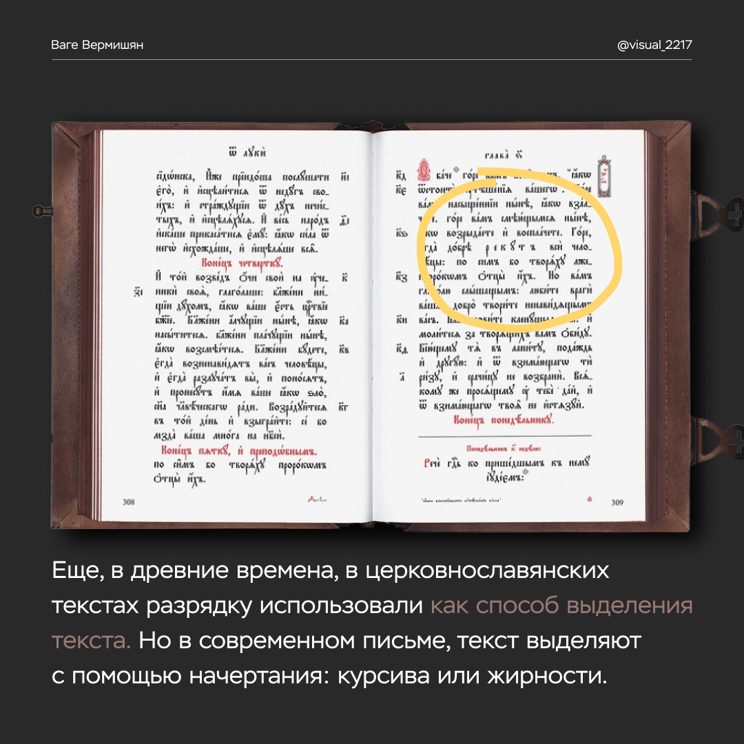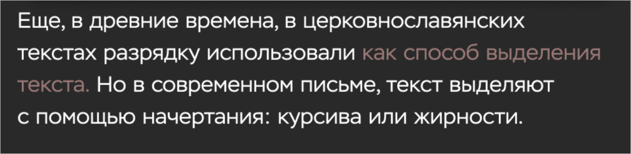 А ещё разрядка используется в пьесах для выделения имён персонажей
