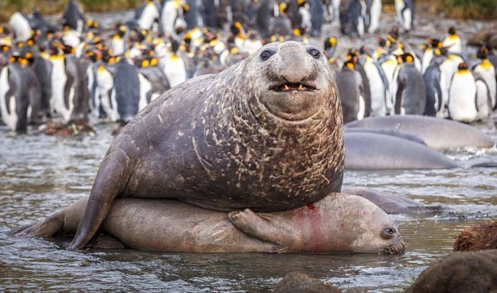 А теперь подумайте об этой самке морского слона, которая лежит лицом вниз в сыром песке пляжа Голд Харбор Бич на острове Южная Георгия, в то время как четырехтонный партнер карабкается на нее сверху.