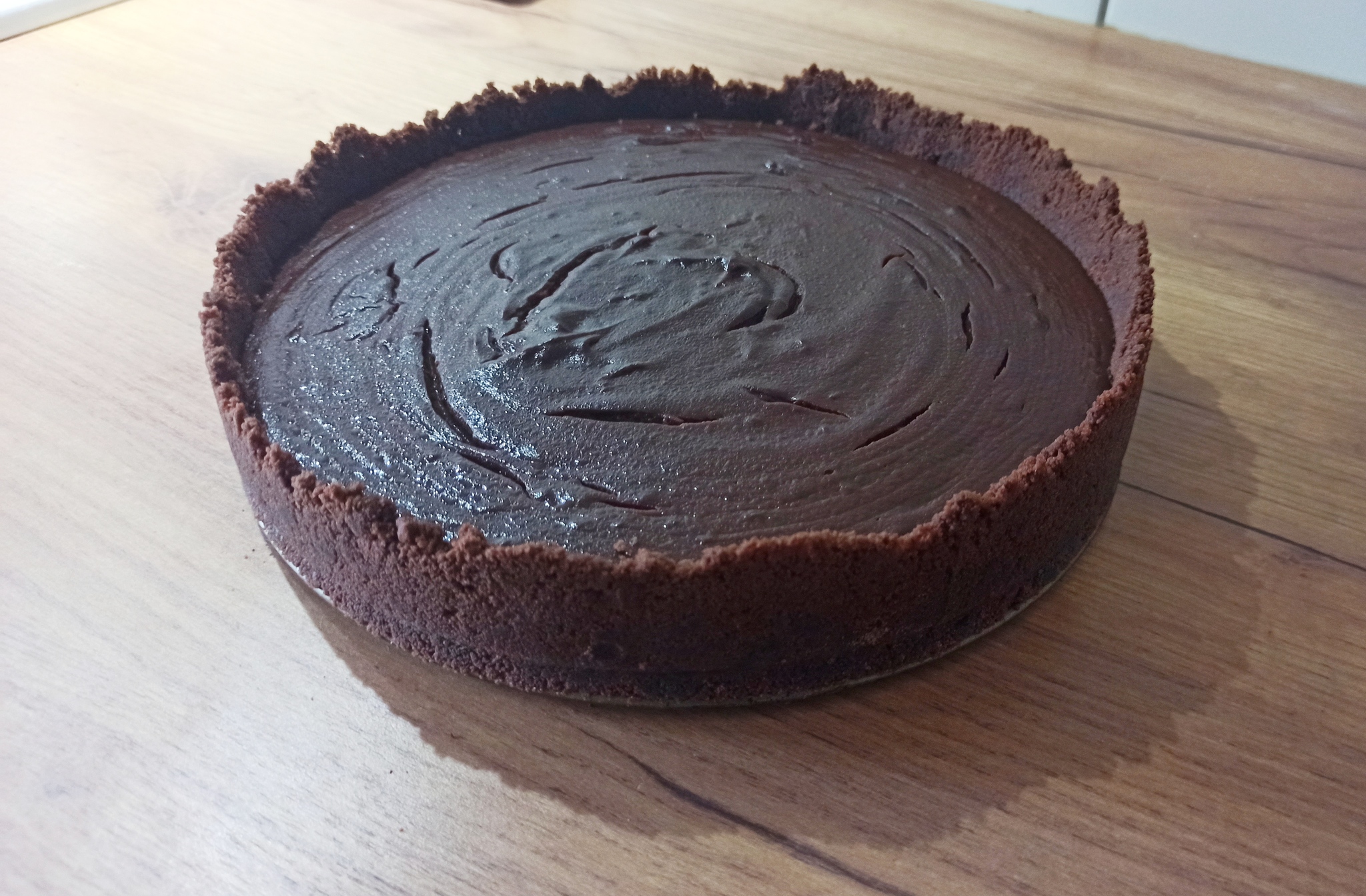 Если дотерпите до утра, то в холодильнике вас ждёт очень нежный кремовый тортик на твердой, но не сухой основе. И очень шоколадный. Всегда бы так