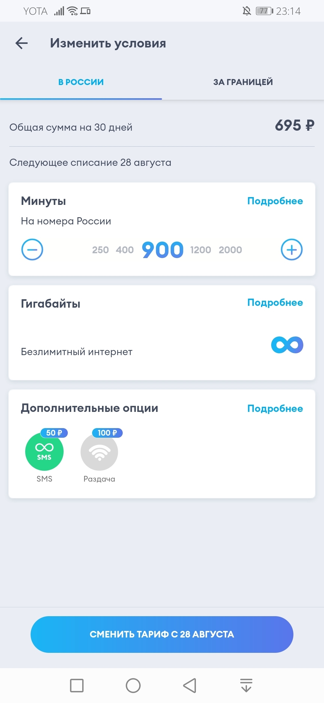 Ничего себе как у них цены подскочили. Или это они деньги за фильмы дерут? Но согласна, что у Теле 2 самые дешёвые тарифы. У меня архивный тариф "Безлимит 06_2020_1" 450 рублей за безлимитный интернет, 500 минут и 50 смс.