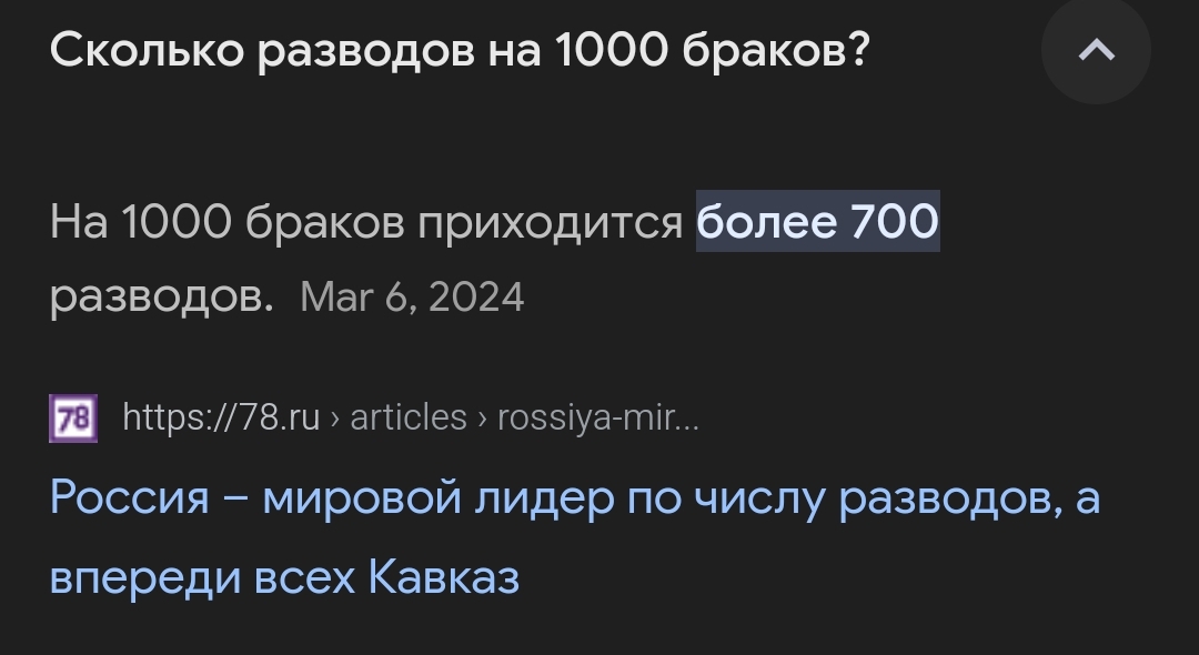 Все знают про печально известную статистику: 70% браков оканчиваются разводом в течение первых пяти лет брака. Там дальше ещё есть цифры, сейчас найду.