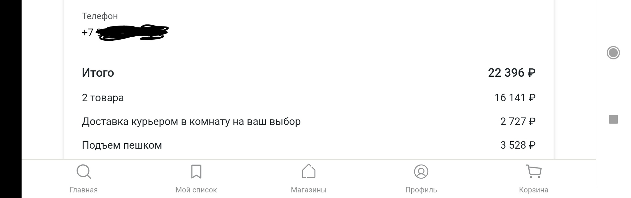 А теперь такая вот ситуация с нынешней "Лемана про". Заказал гипсокартон 2,7 метра и 3 метра. С полной предоплатой. С доставкой до квартиры. Всего 29 листов. Был необходим подъëм на пятый этаж обычной хрущëвки ( без лифта, естественно). Приехав ко мне, водитель поднялся в квартиру и сказал, что они поднимать гипсокартон не будут т.к. мало места на лестничной площадке и увëз заказ назад в магазин.
