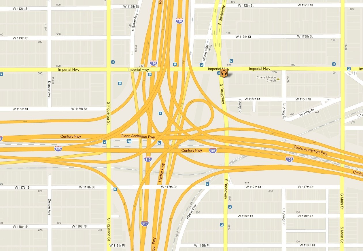 Развязка состоит из дорог для пассажирского транспорта, путей метрополитена Лос-Анджелеса и транзитной дороги Harbor и имеет 4 уровня по высоте.