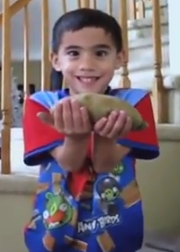 Младший брат наконец то отомстил старшем, хоть и картошкой :D