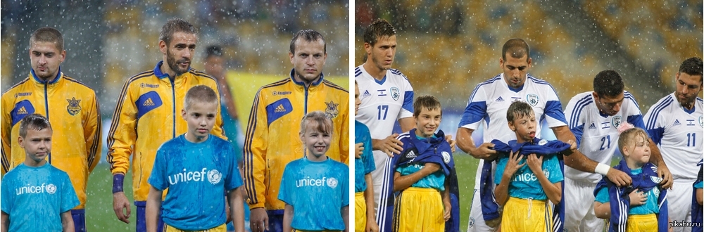 В Киеве в среду играли сборные Украины и Израиля. Едва только команды вышли на поле, начался проливной дождь. На непогоду футболисты отреагировали по-разному.