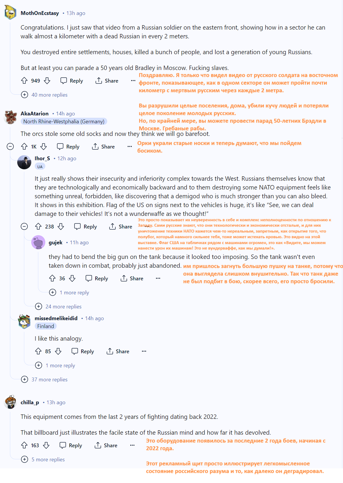 319 DoctorBuben Реакция сообщества Reddit на выставку захваченной техники НАТО в Москве 1 год назад https://www.reddit.com/r/europe/comments/1cjtu8a/photo_from_... Перевел самые топовые комментарии. [моё] Политика Война Украина Выставка НАТО Запад Длиннопост Reddit Скриншот 59 8 3 3 2 Ещё 0