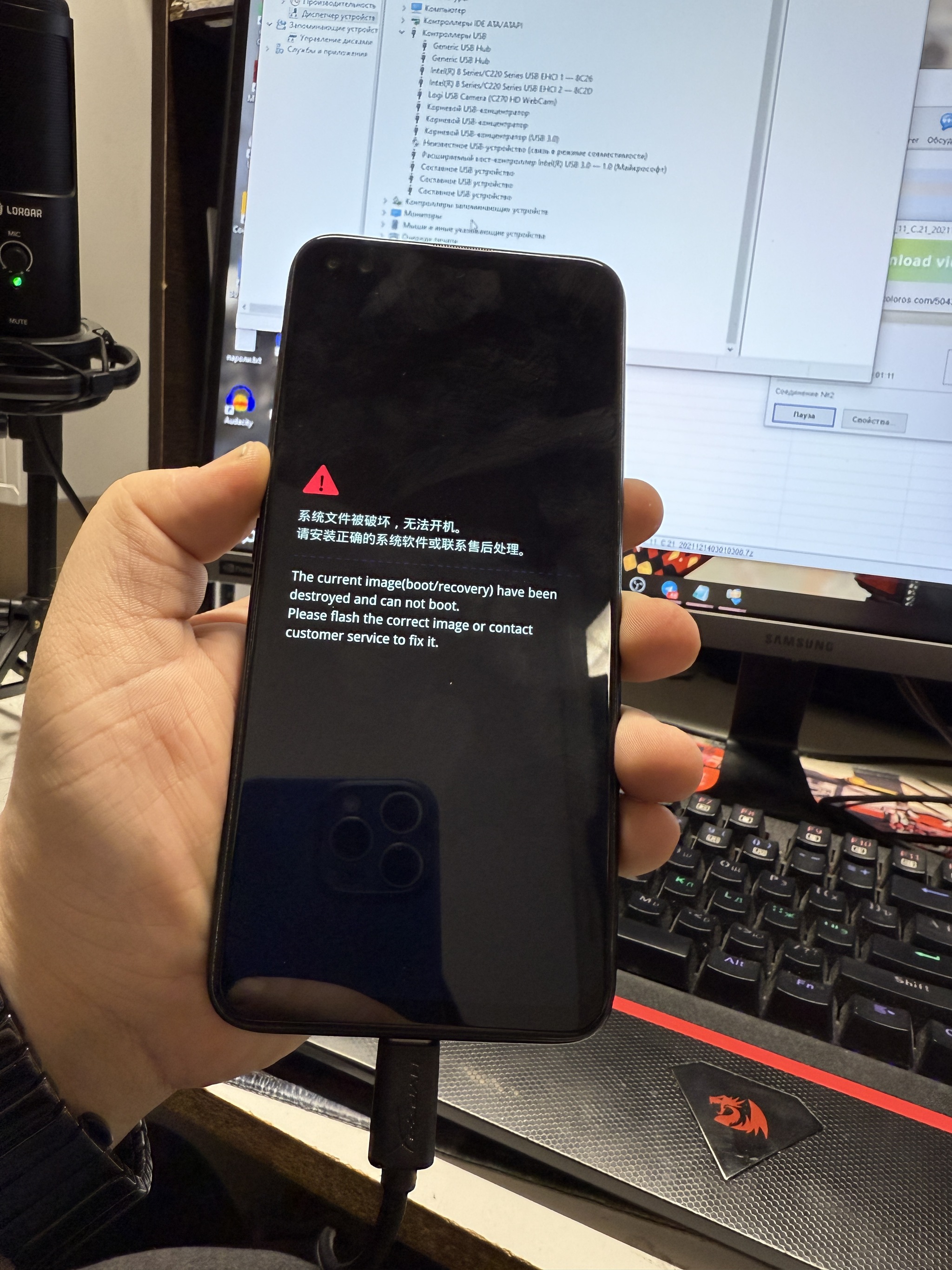 "Realme 6 pro" и фото. На фото красуется вот такая надпись: "The current image(boot/recovery) have been destroyed and can not boot.