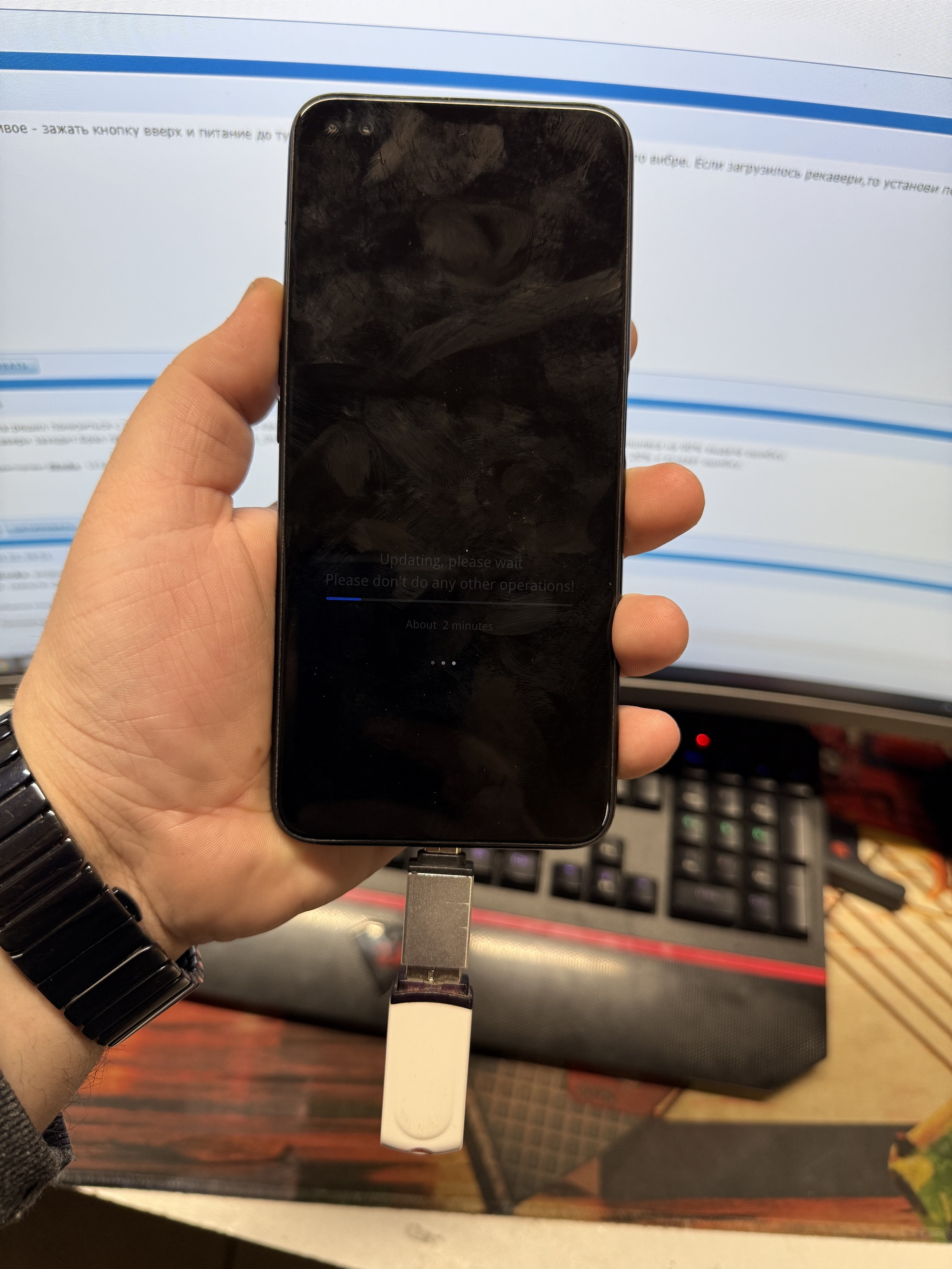 На телефоне запускается режим Recovery, пытаемся обновить телефон через keep online update.