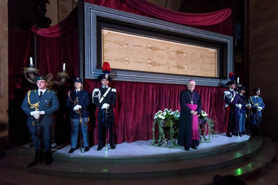 Туринская плащаница, или Священная плащаница, по мнению некоторых, является погребальным одеянием Иисуса Христа. На многовековой льняной ткани, похоже, сохранился слабый образ распятого человека, который перед казнью получил ужасные увечья, в том числе раны от тернового венца.