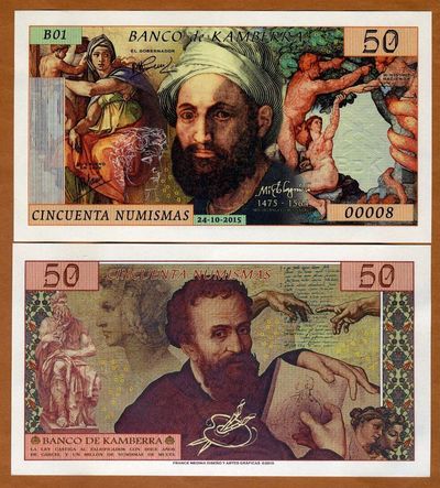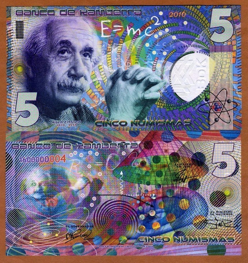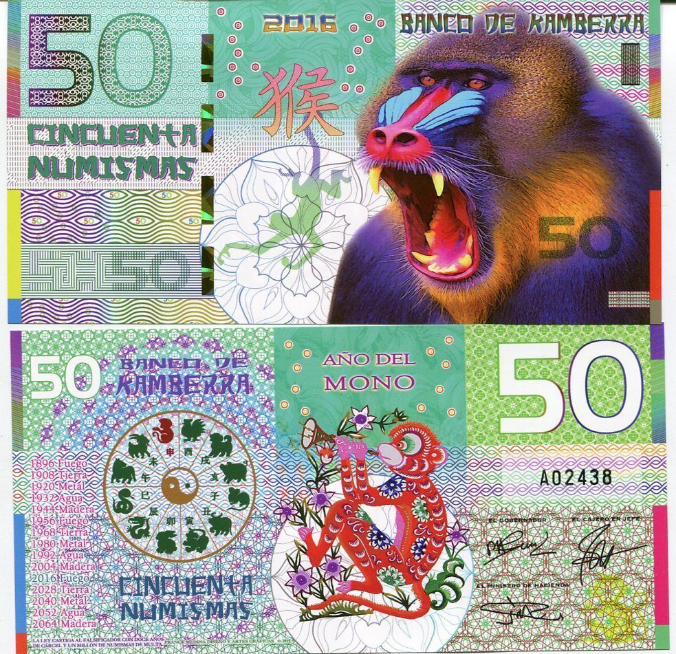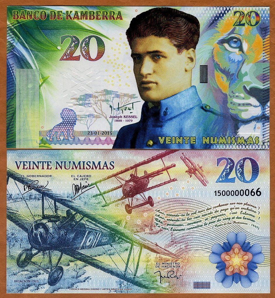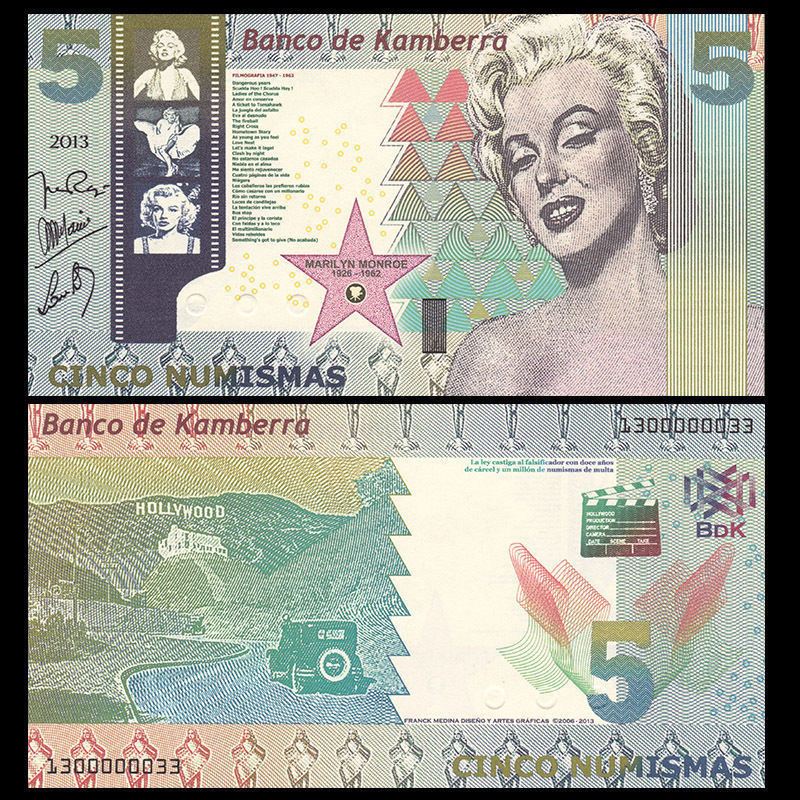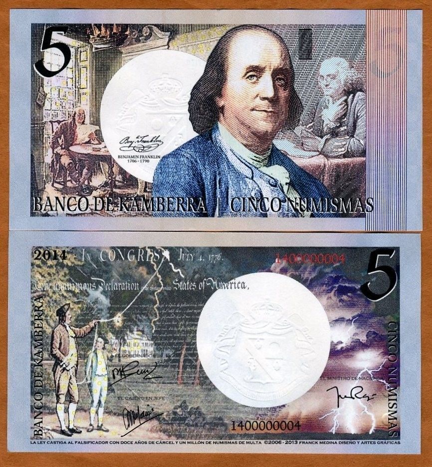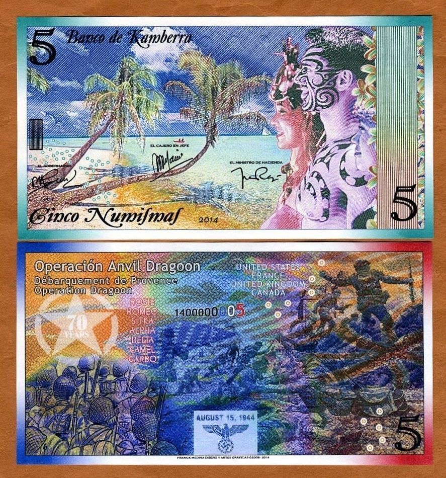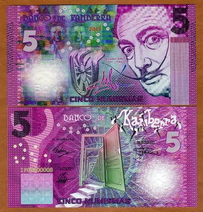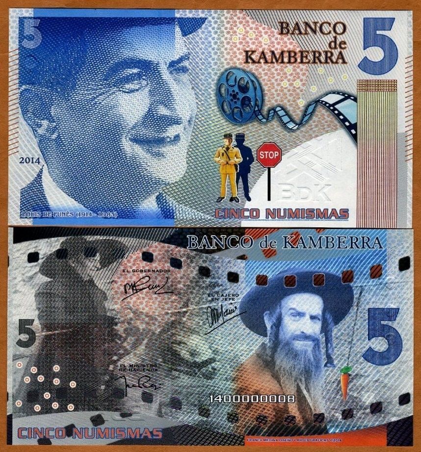Несмотря на то, что страна выдуманная, с банкнотами все по-взрослому. Есть ряд защитных элементов.  Из тех что визуально удалось определить не имея в руках реальной банкноты: микротекст, голограммы, защитная нить, рельефные метки для слабовидящих и что-то похожее на кольца Омрона. А если верить двум найденным описаниям банкнот от Banco de Kamberra —используются еще водяные знаки, скрытые изображения, светящаяся в ультрафиолете краска и много другое.