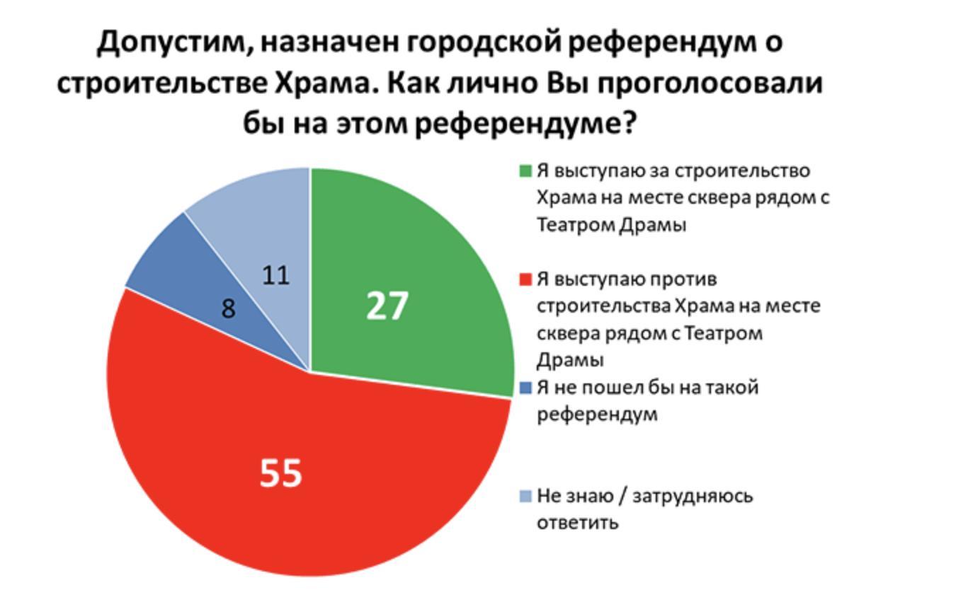 Фонд "Социум" — старейшая и самая авторитетная в Екатеринбурге организация в сфере исследования общественного мнения — публикует цифры опроса о строительстве в сквере у Драмы.