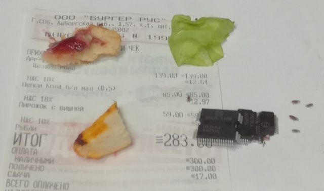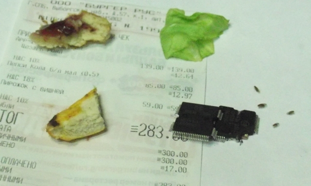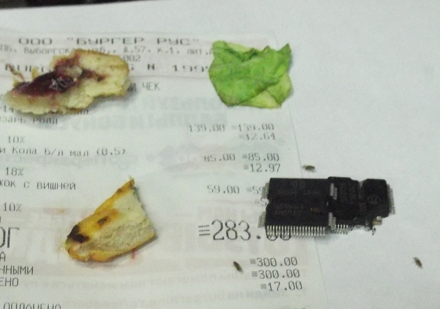На фотках взятый в местном бургере цезар-ролл, пирожок с клубникой-ванилью и микросхемы Bosch от/для EDC16C39. Три фотки вечером, последняя утром. Но температура в помещении упала до 10гр, думаю по теплу их было бы больше.