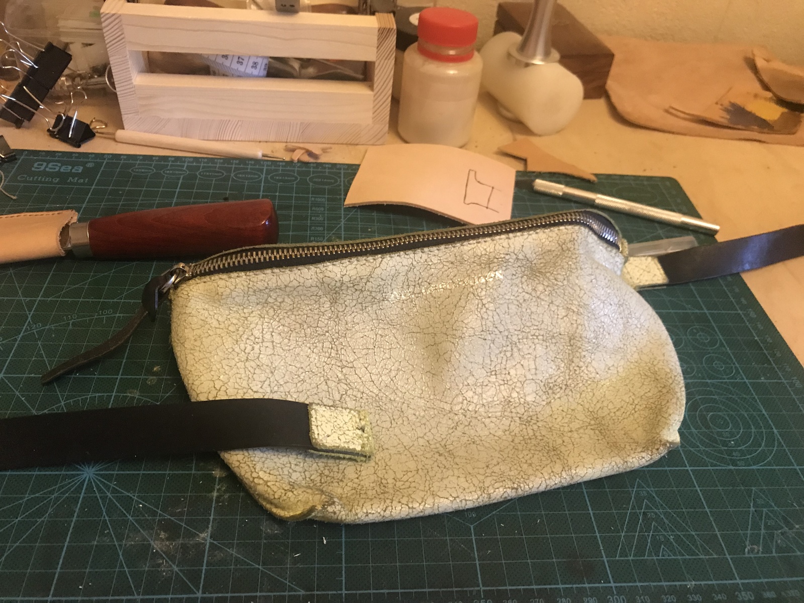 Кожа из которой сделана сумка очень хорошая и мягкая, но точно не для такого типа изделий. Принято решение добавит кусочек от бразильской кожи растительного дубления , у меня как раз такая осталась после последней работы по теснению.