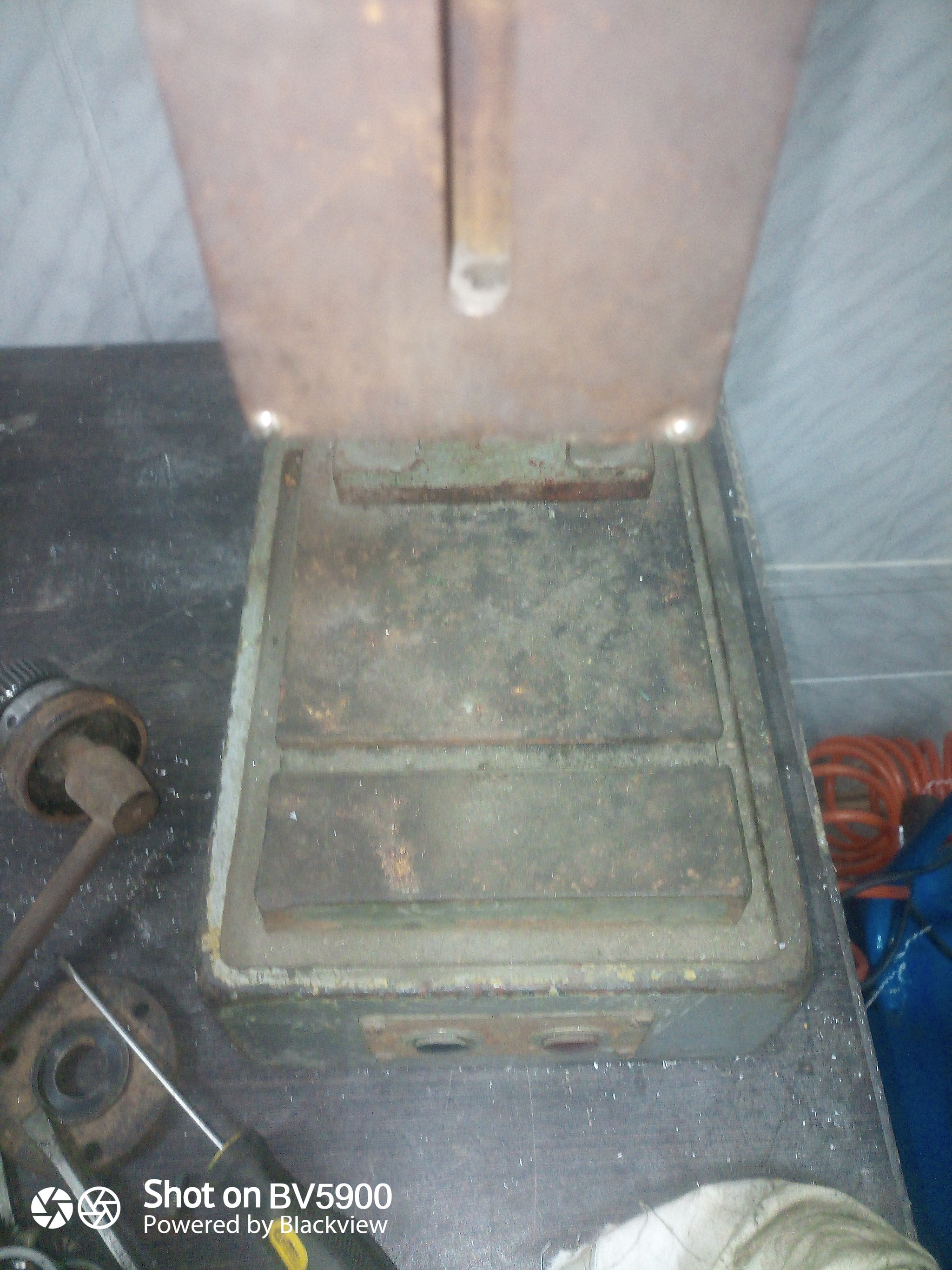 Достался мне недорого станок сверлильный,марка 2г103п. Стоял он в гараже у продавца,оттого у него не очень весёлый вид. Ржавчина на поверхности и грязь на корпусе. Ещё и без электрики,только самопал на подключение к 220 вольт,сам станок рассчитан на 380. В принципе для моих целей подходит,пробовал подключить напрямую через автомат-работает,но шум и дребезг присутствует. Ну что ж,начнем разборку. Тут он уже со снятыми внутренностями.