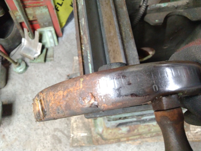 Интересные маховики вертикальной и поперечной подачи - нониусные шкалы нанесены прямно на них (и похоронены под ржавотиной)