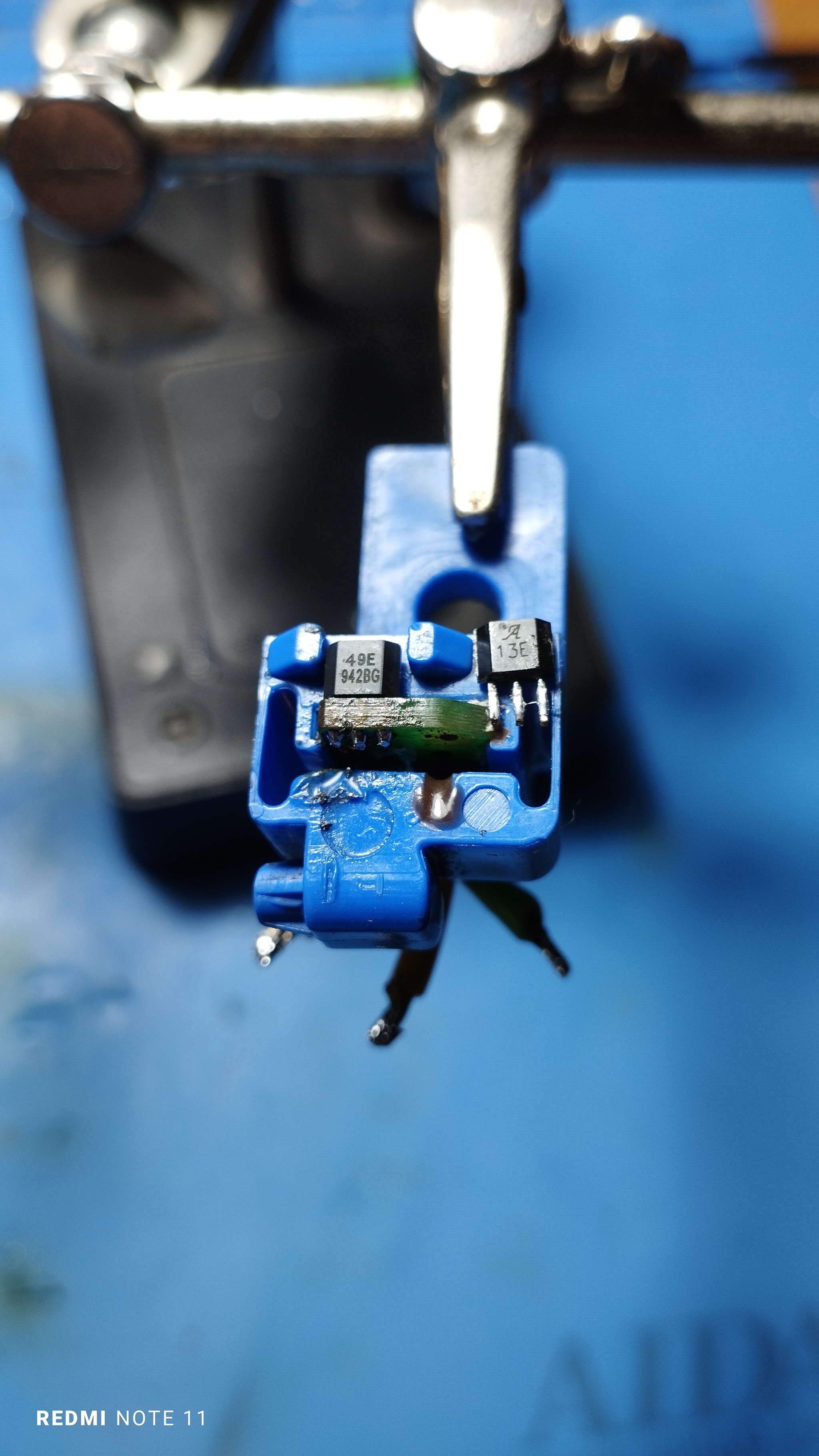 Выкупил на детали старенький электробайк Gazelle Orange Inergy 2012 года. Со слов продавца он включается и не едет, гашетки нет, работает только от системы PAS. Короче выкупил. Разобрался, почему не едет. Очень хитромудрая система. На заднем дропауте стоит "тензодатчик". Внутри тензодатчика есть активирующий PAS датчик Холла и магнит с ещё одним датчиком (неизвестным, ибо шняга неразборная), который смотрит на натяжение цепи и активируется при натяжении. Тогда вступает в дело тензодатчик. Короче, там стоял холл с маркировкой 13Е. При подносе магнита свои данные на ноге сигнала не менял, поэтому вел не ехал. Такого же не нашёл, поставил 49Е. Но тот поработал ( и то рандомно или хаотично) и перестал через 2 минутки. Но вел колесо покрутил. Собственно вопрос : может кто в курсе, что за зверь такой 13Е? Чем заменить?