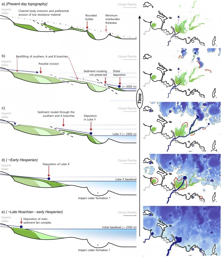 По словам исследователей, речная система в Hypanis Valles была активна в течение первого миллиарда лет после формирования планеты. При этом характер осадочных отложений в районе дельты демонстрирует, что с течением времени уровень воды в марсианском океане снизился на 500 м. По всей видимости, этот процесс был связан с его постепенным пересыханием, вызванным изменением климата. Анализ имеющихся данных говорит о том, что водная система Hypanis Valles прекратила свое существование примерно 3.6 миллиарда лет назад.