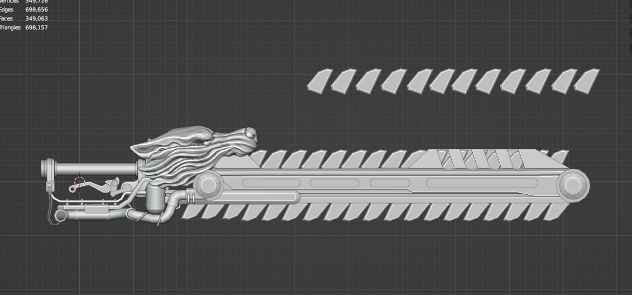 В итоге мы сошлись на идее стилизации переднего обтекателя под пожелтелый череп некоторого фантастического зверя и изображении менимального вооружения на других деталях.