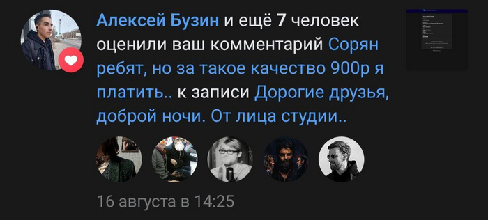 Качество озвучек было хорошее, популярность росла и вот уже озвучки публикуются не в пиратских кинотеатрах, а показываются в обычных как официальные киносеансы. И все было хорошо, но грянул релиз Дедпула 3. И тут выясняется, что RHS покупали для озвучки киноленты не напрямую у казахов, а перекупали у кинотеатров. Казахи об этом узнали и пригрозили разрывом соглашений. В результате у РХС не получилось получить кинотеатральную копию Дедпула (по другой информации директор RHS Череватенко не захотел платить 400к). И вот в группе РХС появляется обновление - УРА, озвучка готова, вот список кинотеатров, покупайте билеты. Множество фанатов (я в том числе) кинулись покупать билеты. К слову, очень недешевые - 900р, но ЭТО ЖЕ ТЕ ГОЛОСА. Билеты покупались на воскресенье, а в день премьеры в четверг грянул гром. Оказывается РХС озвучили слитую в интернет версию в качестве TS. Вы давно смотрели TS версию в кино за 900р? Я - нет и начинать не планирую. В комментариях отметилось множество разочарованных фанатов ведь ни слова о том, что будут крутить ЭКРАНКУ в анонсе не было. В комментариях отметились даже кинотеатры