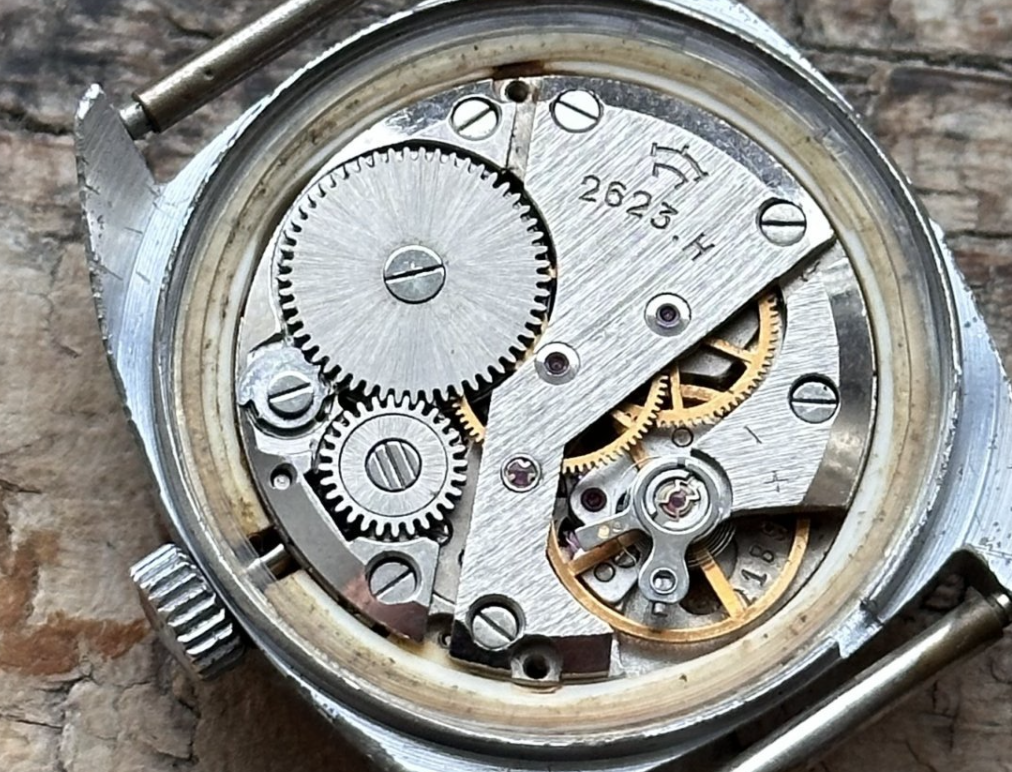 Часы оснащены полностью мануфактурным механизмом петродворцового часового завода - 2623H с ручным заводом. Калибр собран на 19 камнях и имеет запас хода 38 часов. Часовая стрелка совершает 1 оборот за 24 часа, что позволяет с первого взгляда различать время дня и ночи.