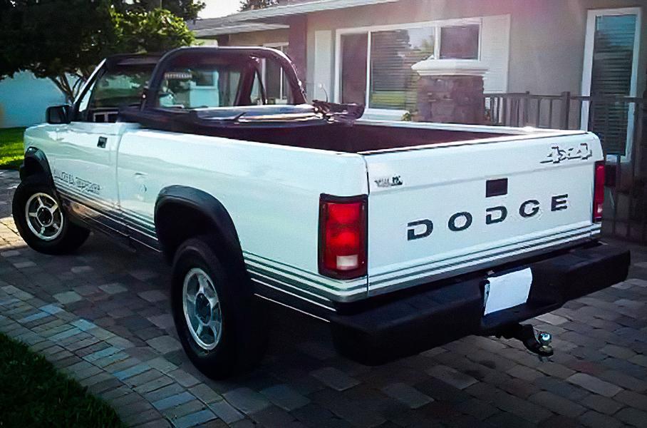 В конце восьмидесятых Dodge и American Sunroof Company затеяли проект пикапа-кабриолета, используя в качестве основы обычную среднеразмерную модель Dakota с одинарной кабиной. Идея воплощалась нехитрыми методами — у серийных автомобилей срезалась крыша, дверные рамки и задние стойки, вместо которых вырастала дуга безопасности и складной мягкий верх. Форм-фактор может показаться до мозга рамы оригинальным, однако он не был чем-то принципиально новым. Достаточно вспомнить армейский Kaiser Jeep M715 шестидесятых годов, с брезентовой крышей которого приходилось мириться водителю и пассажиру.