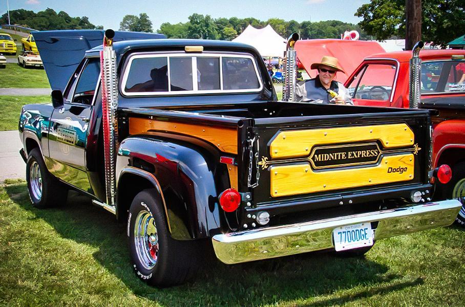 Отправной точкой выступал Warlock неизменно черного цвета. Внешние доработки, которыми в первую очередь занимался чикагский перформанс-центр Mr Norm’s Grand Spaulding Dodge, копировали наиболее характерные черты «маленького красного экспресса». Позади кабины вырастали хромированные выпускные трубы, двери украшались золотистыми эмблемами, а боковины кузова — деревянными панелями. Если бы не раскраска, то Midnite Express с сотни шагов можно было бы принять за его заводского собрата