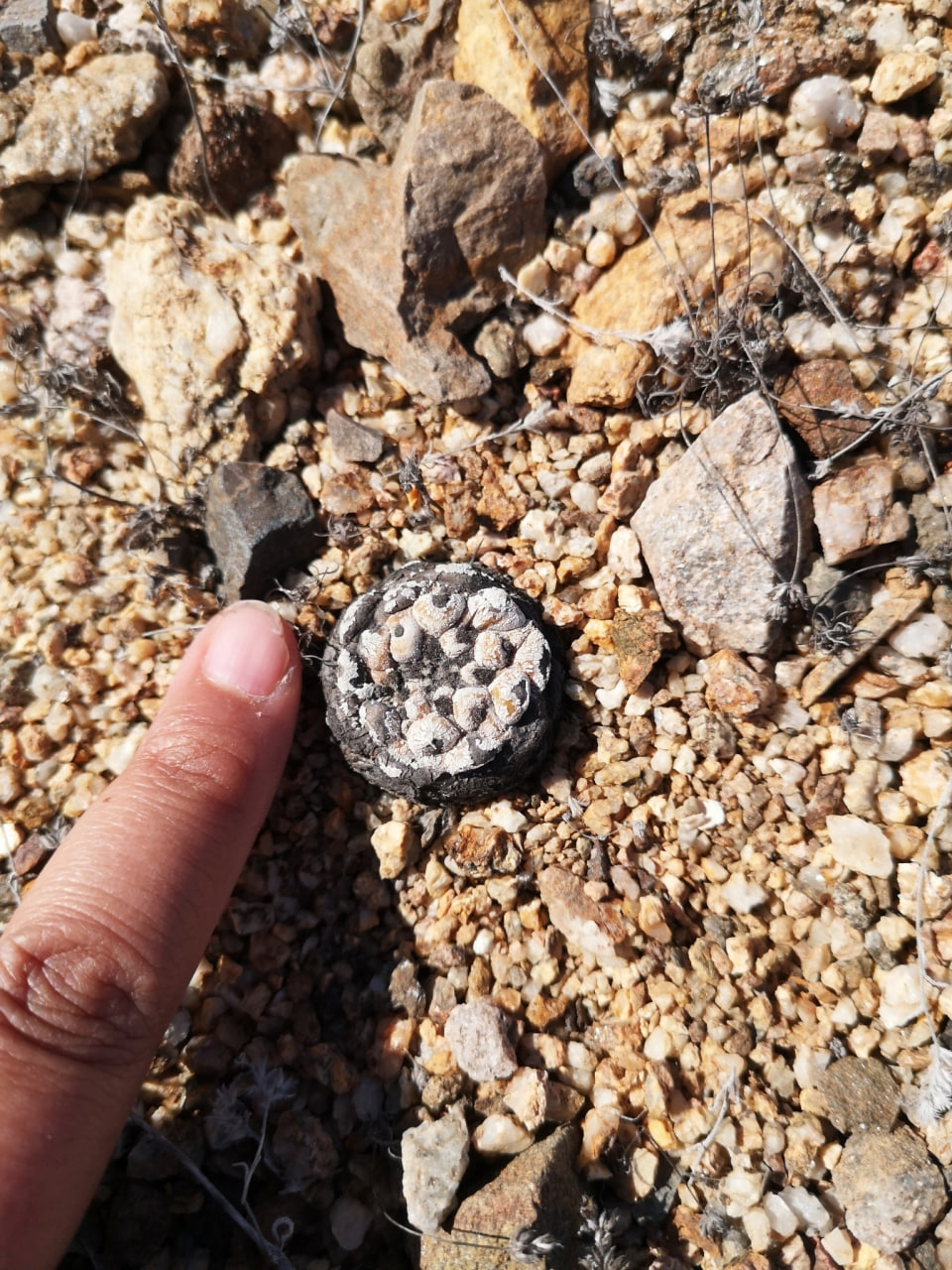 Побитый жизнью сеянец Copiapoa cinerea ssp. columna-alba.