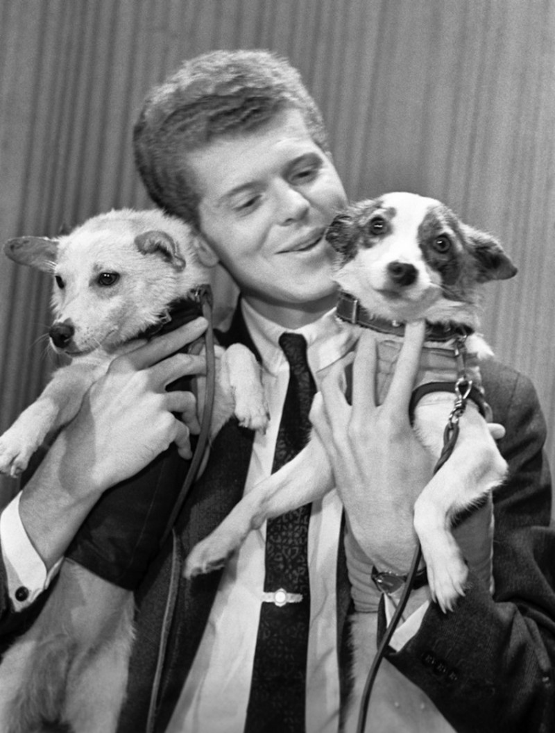 Лауреат I Международного конкурса им. Чайковского американский пианист Ван Клиберн с Белкой и Стрелкой, 1960 год