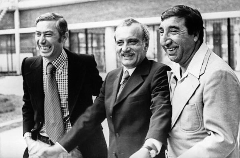 Вахтанг Кикабидзе, Георгий Данелия, Фрунзик Мкртчян на вручении Золотого приза за фильм «Мимино». Х МКФ. 1977г. СССР.