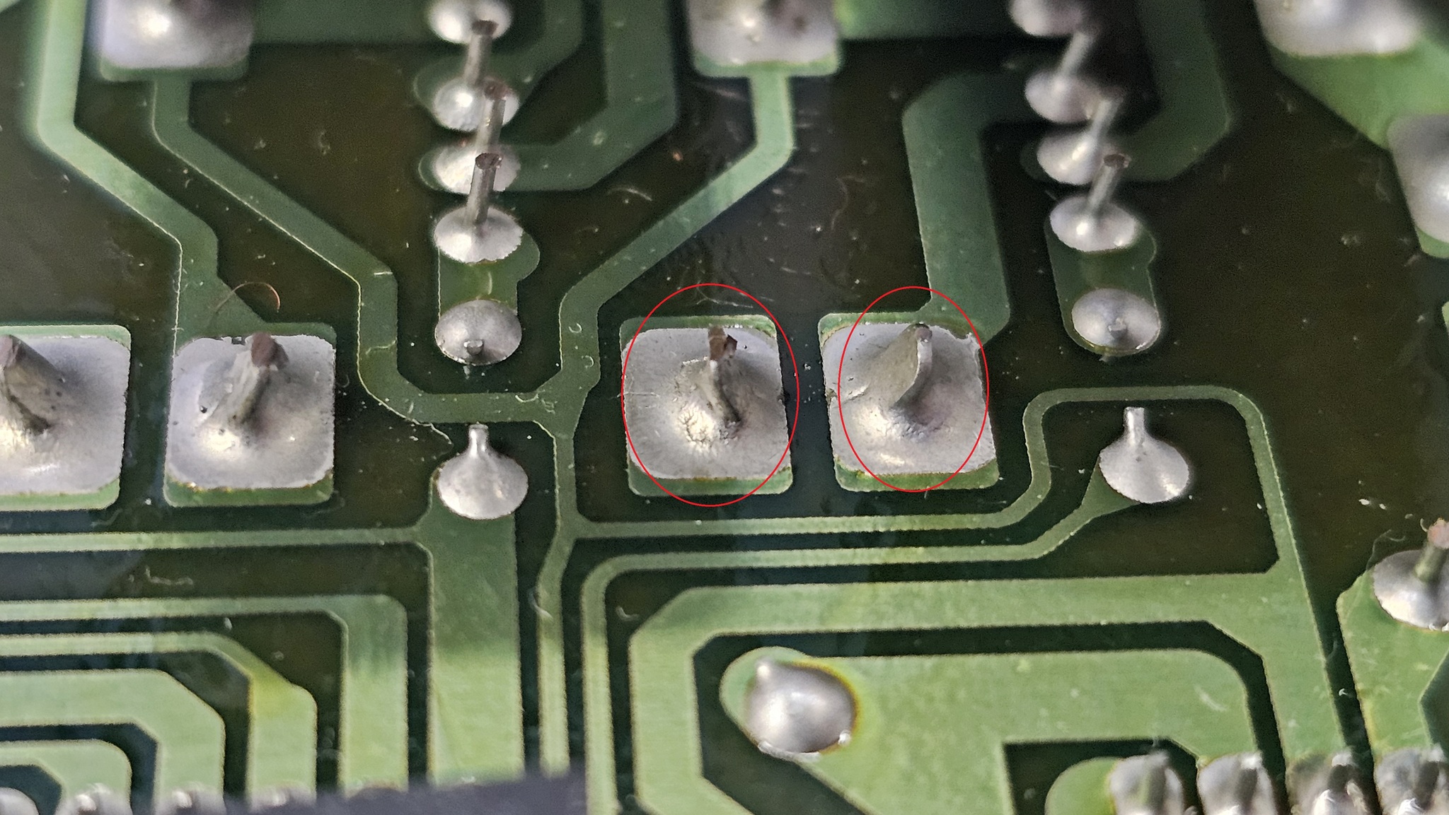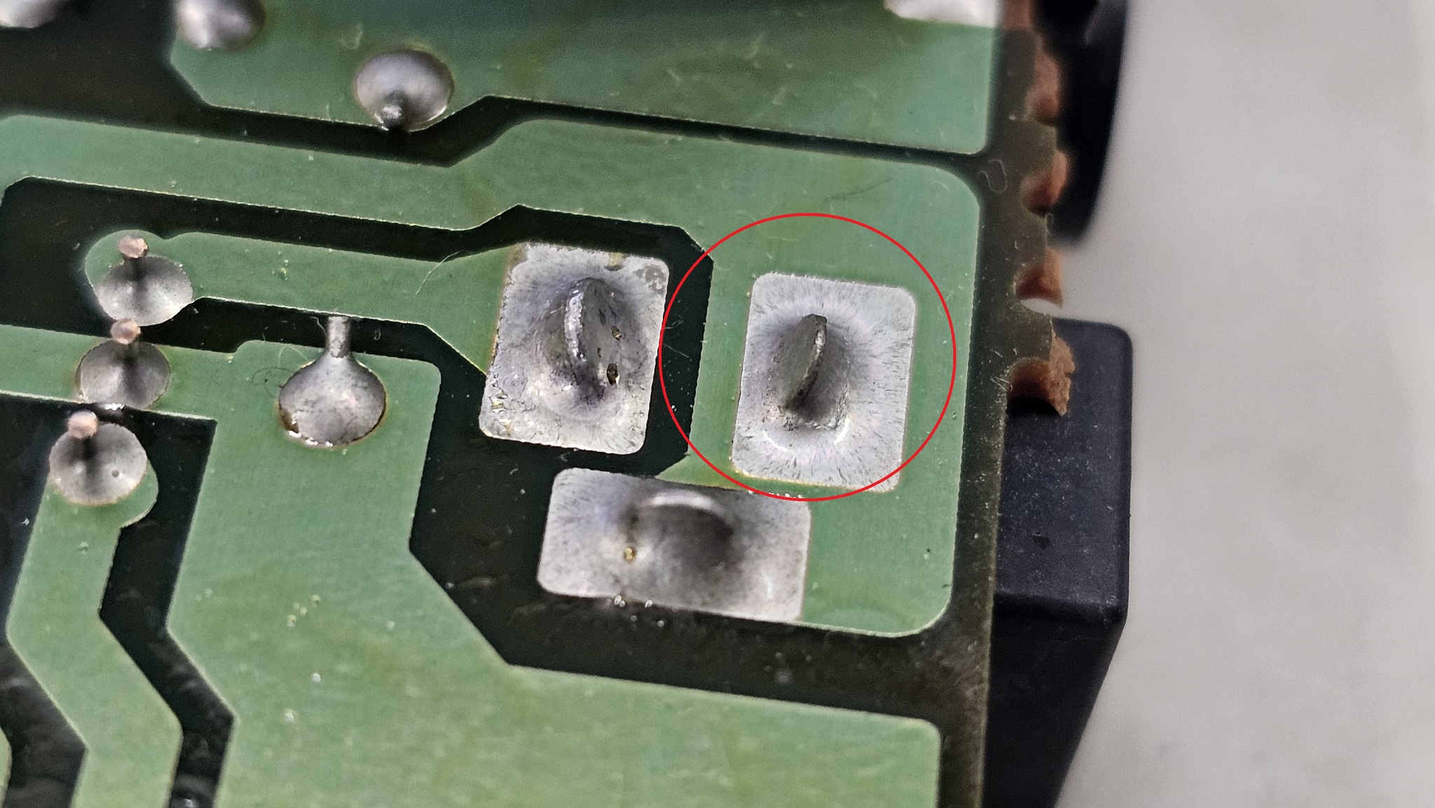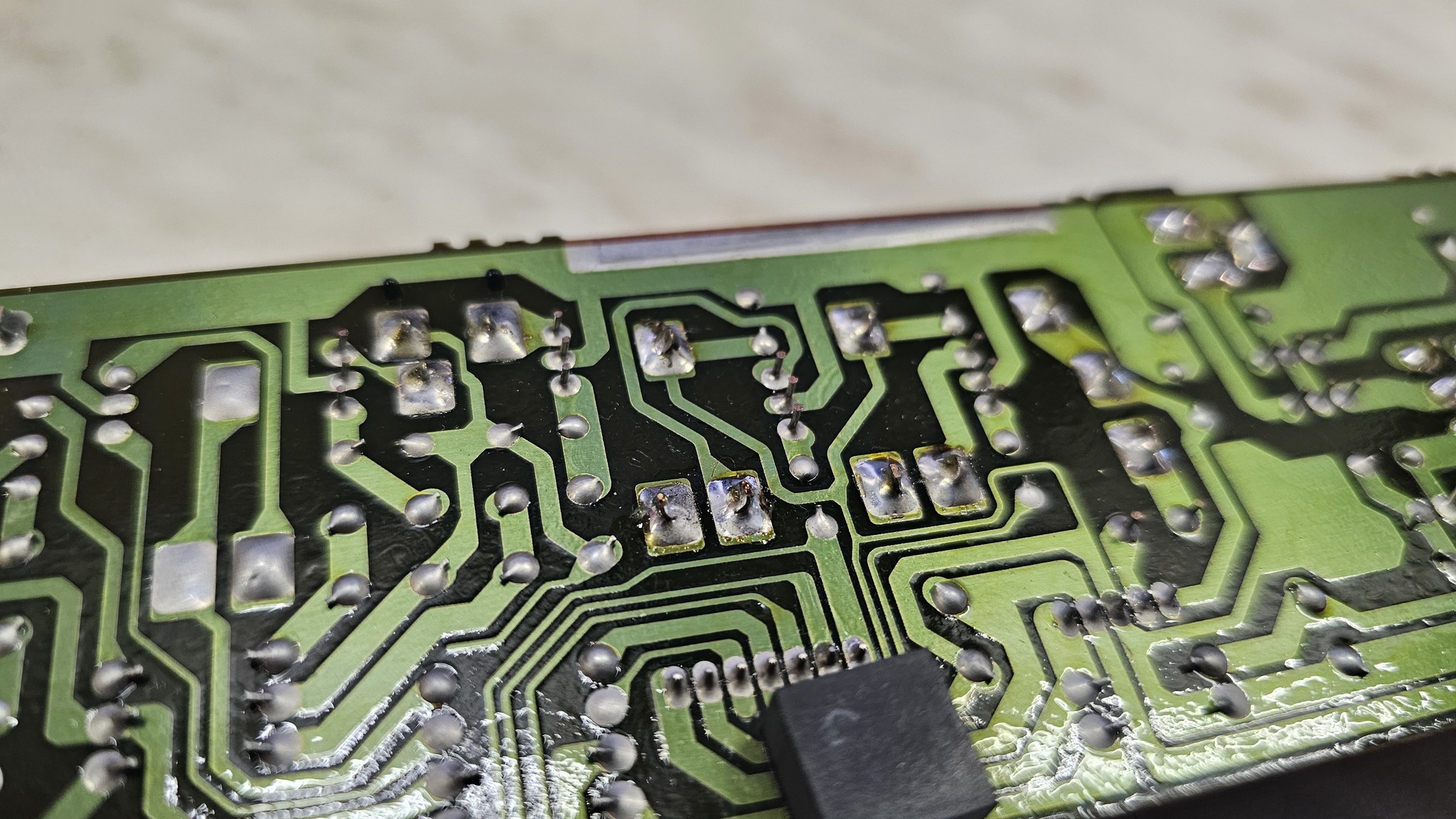 Далее начинаю внимательный осмотр плат на предмет "кольцевых" трещин на припое, возникающих из-за давления на элементы на плате и применения дешёвого припоя