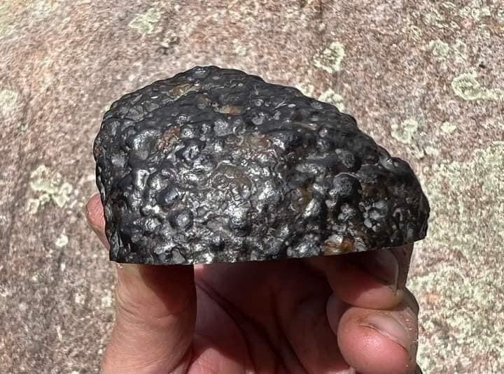Интереснейшая структура - каменные (силикатные) шарики (хондры) в матрице из металлических железо-никелевых шариков.