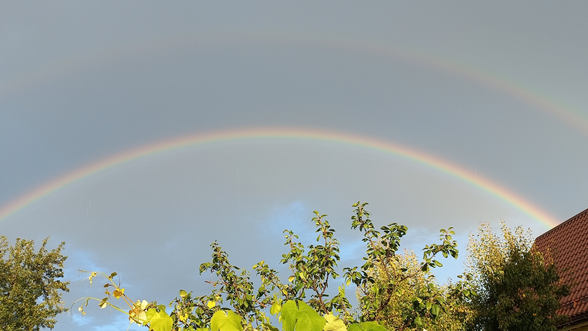 Вторая радуга быстро растаяла, но я успела ее заснять) Я впервые наблюдала своими глазами такое явление) Камера почти не уловила, но вживую мы увидели все 7 цветов, даже фиолетовый)