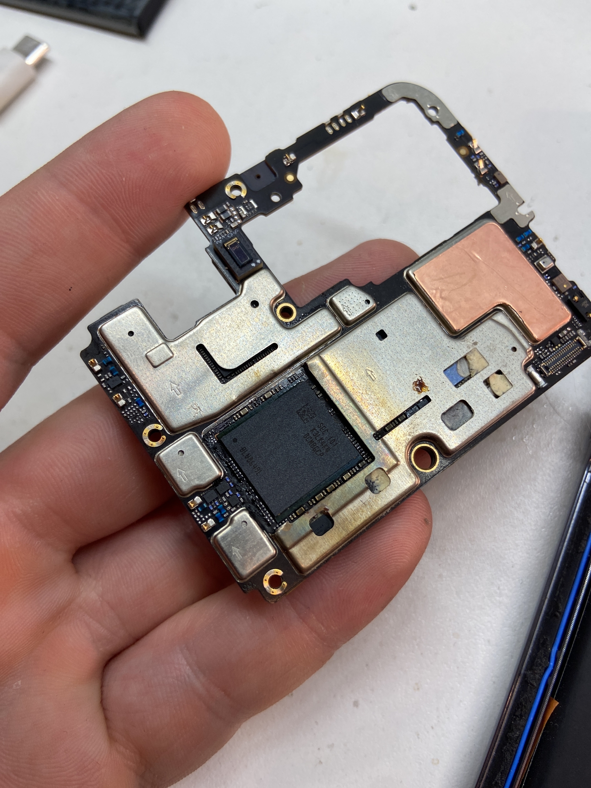 И бонусом к нему плата-донор, гнутая, с отломанным куском и убитым дисплейным коннектором, но без Mi аккаунта, поэтому с неё мы будем дергать пару и устанавливать в целую ровную плату.