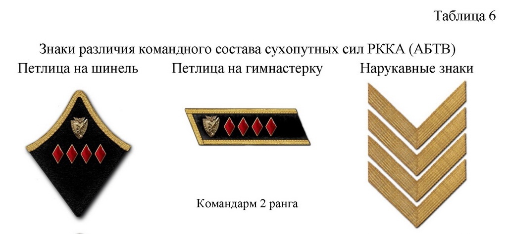 Особо стоит отметить, что звания командарм 2 ранга существовали только для основных родов войск. Во вспомогательных родах войск (технические, химические и т.д.) высшим установленным званием было звание комкора. Т.е. командарма 2 ранга с эмблемами химических войск быть не могло.