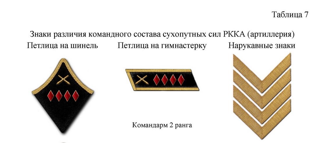 1) Введенные приказом РВСР № 322 от 21 января 1922 года и отмененные приказом РВС СССР № 807 от 20 июня 1924 года (артиллерия, АБТВ).