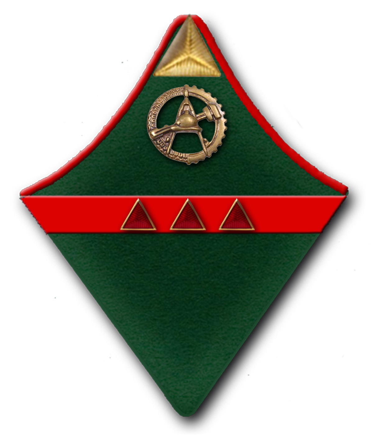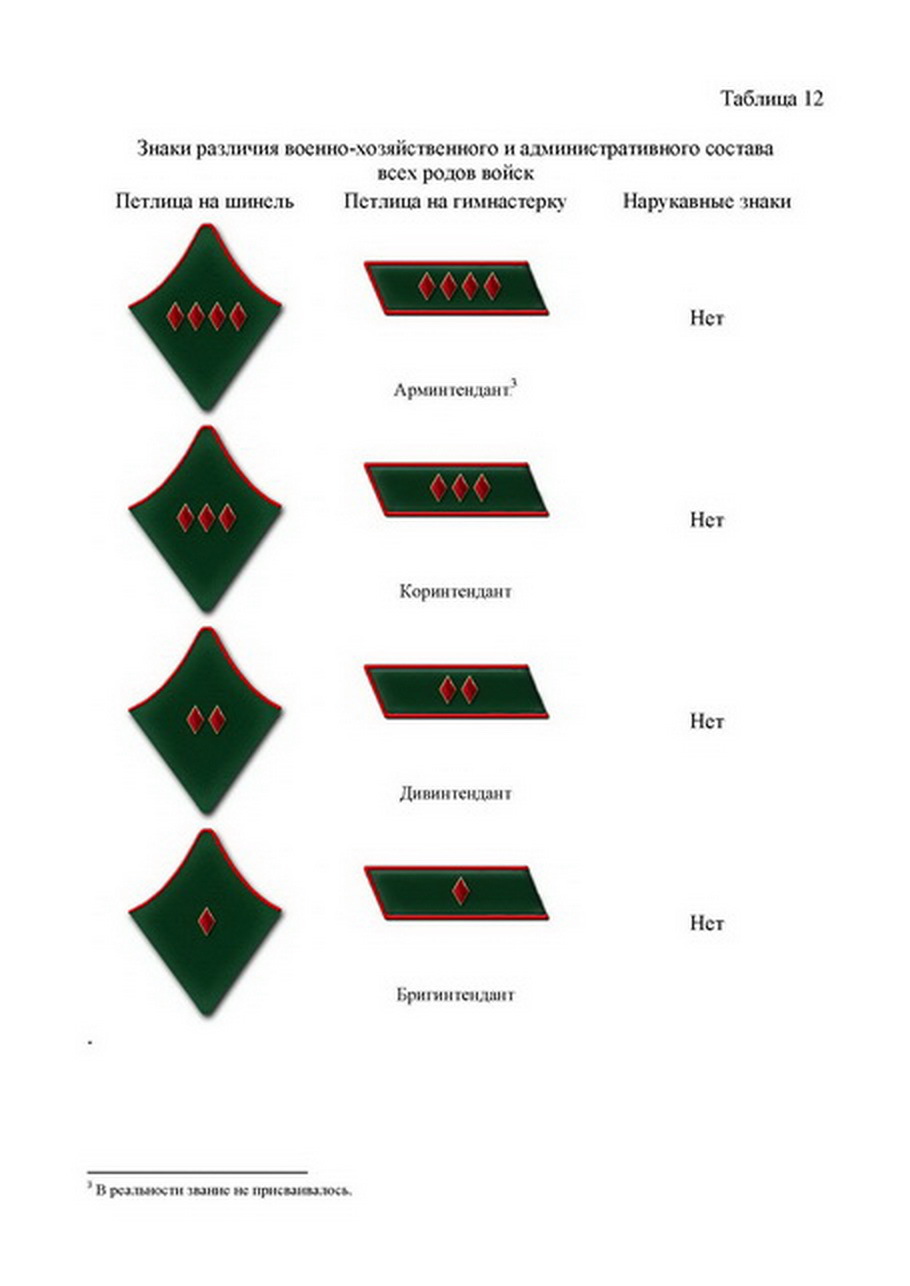 «…знаки различия по присвоенному званию на темно-зеленых петлицах с красной окантовкой …, без нарукавных знаков различия».
