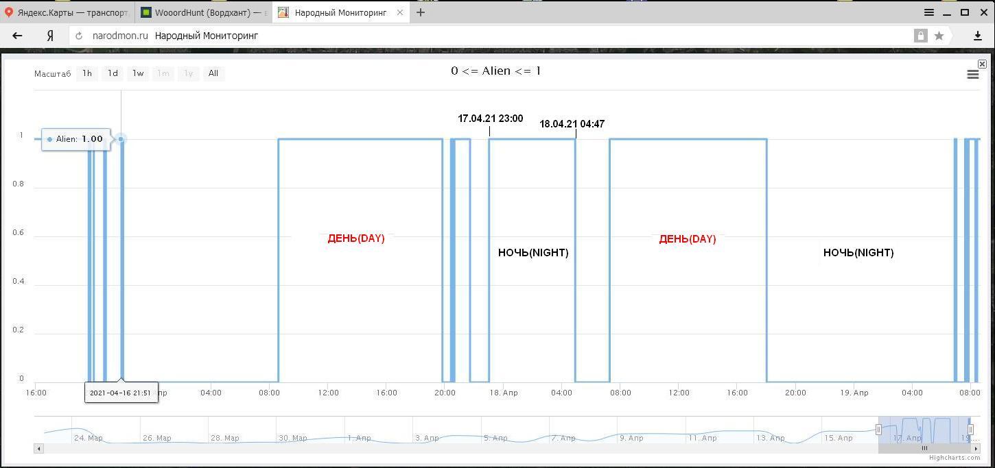 то логический датчик сбрасывается). Я использую сайт narodmon.ru- на нём можно зарегистрироваться и при наличии специального устройства передавать на сайт показания датчика и затем остаётся только просматривать графики на наличие события и его время .