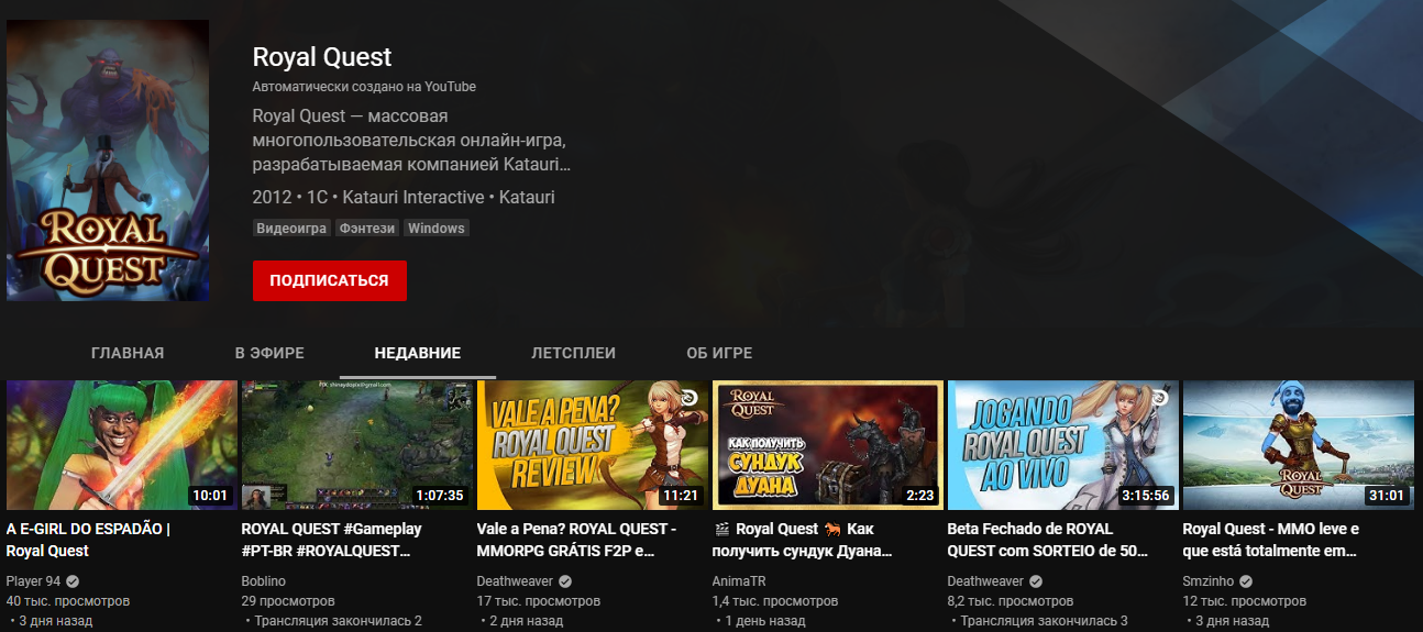 DELETED Лига Royal Quest Реклама бразильского сервака Royal Quest идет полным ходом 3 года назад В недавних видео ютуба по игре в самом верху из 6 видео 5 от бразильцев Royal Quest MMORPG Innova 4game 1С Компьютерные игры YouTube Ещё 0