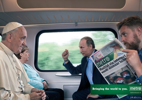 8 semen12345 Реклама еженедельника Metro в Нидерландах 11 лет назад Слоган: Bringing The World to You. Агенство: Animal Farm Политика Реклама Владимир Путин Ангела Меркель Картинки