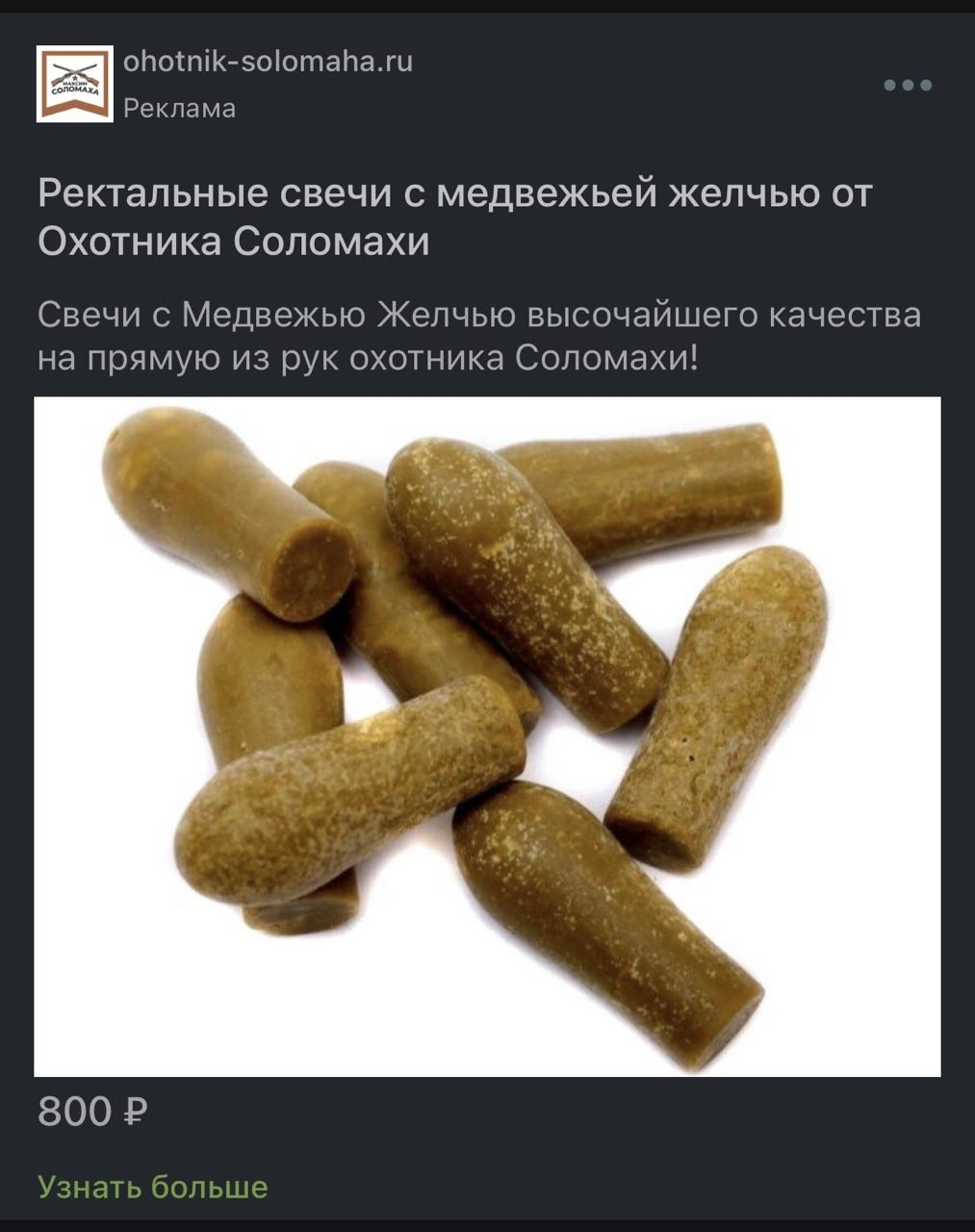 6 nikolyaka Реклама на Пикабу что ты делаешь 2 года назад У меня вопрос больше чем ответов. Ректальные свечи из желчи медведя. Это же кому-то пришла идея это попробовать. И что я делаю не так что мне такое предлагается. [моё] Реклама на Пикабу Народная медицина 1 Ещё 0