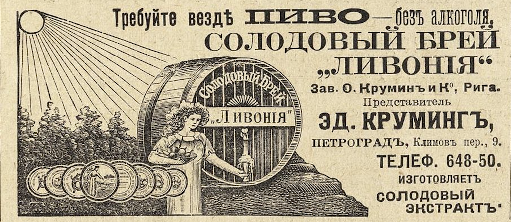 Безалкогольное пиво в Российской Империи меня, мягко говоря, удивило. Главным образом по той причине, что большинство источников утверждает, что появилось оно во времена Сухого закона в США. Но это 1920 год. Русскоязычная Вики вообще говорит о 1976 годе и Чехословакии. А тут 1917 год! И безалкогольное пиво не просто выпускают, а даже рекламируют!