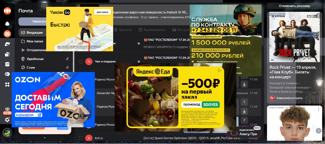 Парочку рекламных постеров лично добавил. Раз Яндекс хочет еще больше походить на мусорную корзину, считаю должным побольше рекламы вставить! Ну чтоб прям кровь из глаз потекла.