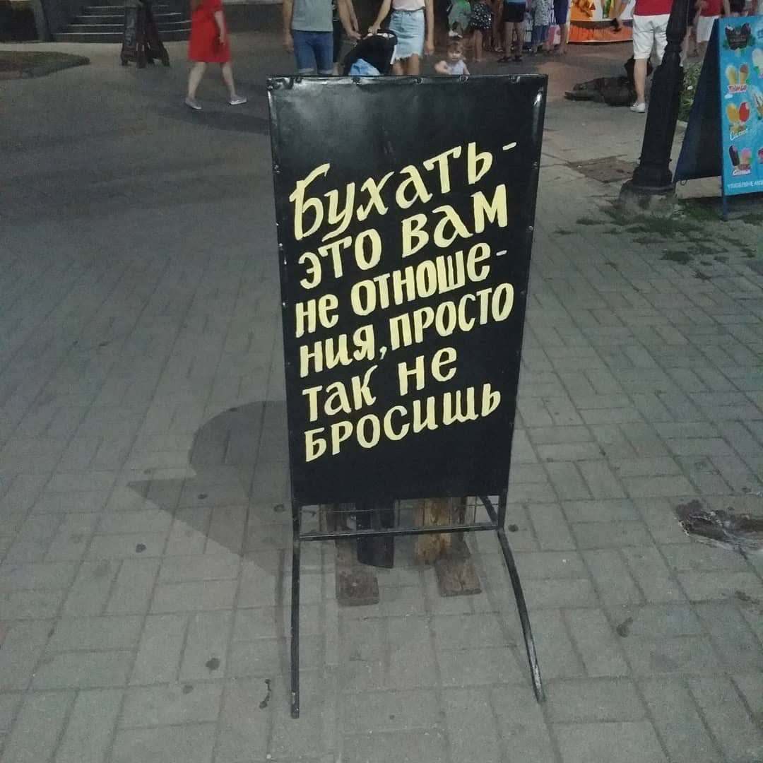 19 yapavlova75 Рекламный креатив 6 лет назад Неспешно прогуливаешься по набережной, вертишь головой из стороны в сторону в поисках чего-нибудь интересного и находишь вот такую рекламу. И не поспоришь ведь - от первого до последнего слова правда. [моё] Реклама Отдых Бердянск Штендер