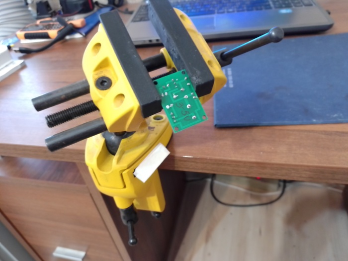 4) Устройство держатель плат во время пайки, начать можно и с простого, мало ли не зайдет, и по цене дешевле, я остановился на тисках моделиста (фирма замазана), так удобнее.