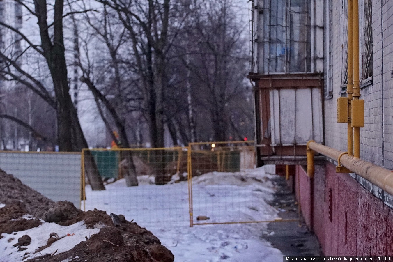 Вы будете удивлены. Расстояние от строящегося расширения дороги до жилого многоэтажного панельного дома - 3 метра. Из-за этого вырубили деревья - как раз видна линия расширения дорожного полотна. Как такое возможно, спросите вы? Увы, есть проект, строителям сказали и строители слепо его исполняют, им плевать. И это Москва, Южный Административный округ столицы.