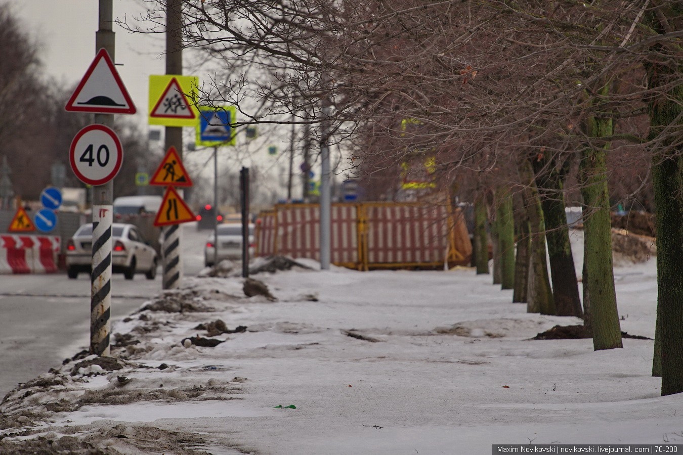 Разумеется, дорожные службы везде расставили предупреждающие знаки и на всем протяжении улицы водитель теряется от такого количества информации