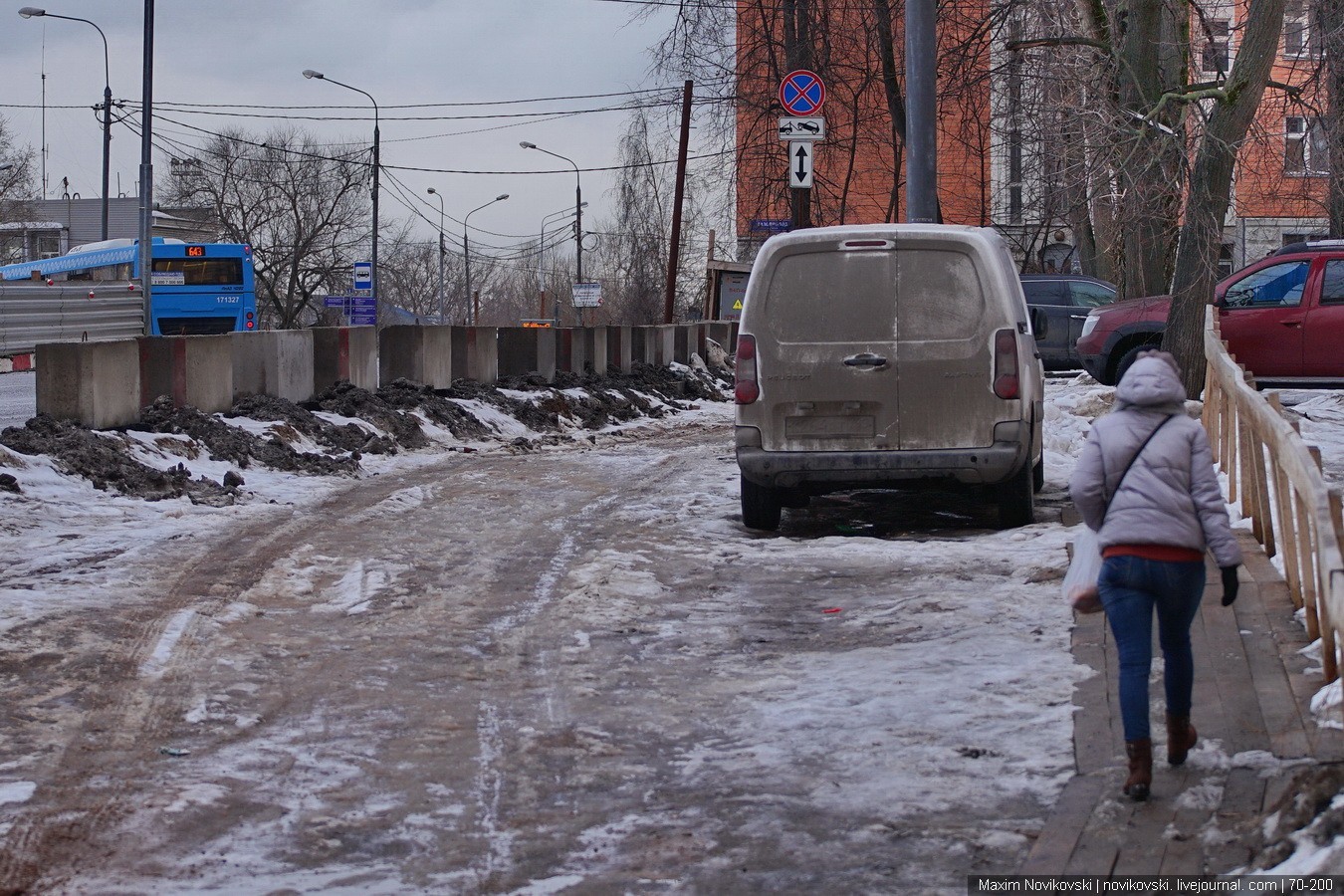 Но пройти по пешеходной дороге - пешеходу нельзя. Остается пешеходам два пути - или идти по проезжей части вместе с автомашинами как и поступают некоторые или же идти по грязи и кустам, обходя экскаваторы и вырытые ямы