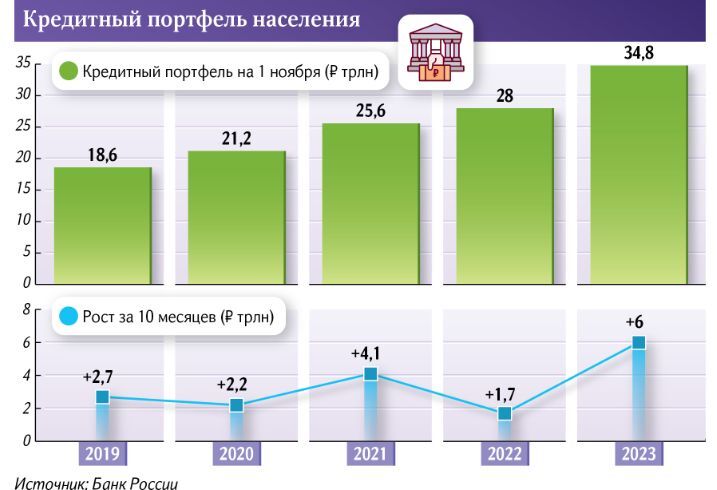 Вторая новость. Граждане России установили новый рекорд: суммарно они набрали долгов более 34.8 триллионов рублей. Из них рекордные 6 триллионов за этот, 2023й год, а точнее за 10 месяцев. То есть совокупный долг граждан увеличился более, чем на 20%. Речь идёт о некоммерческом кредите. Об этом пишут в частности "Известия".